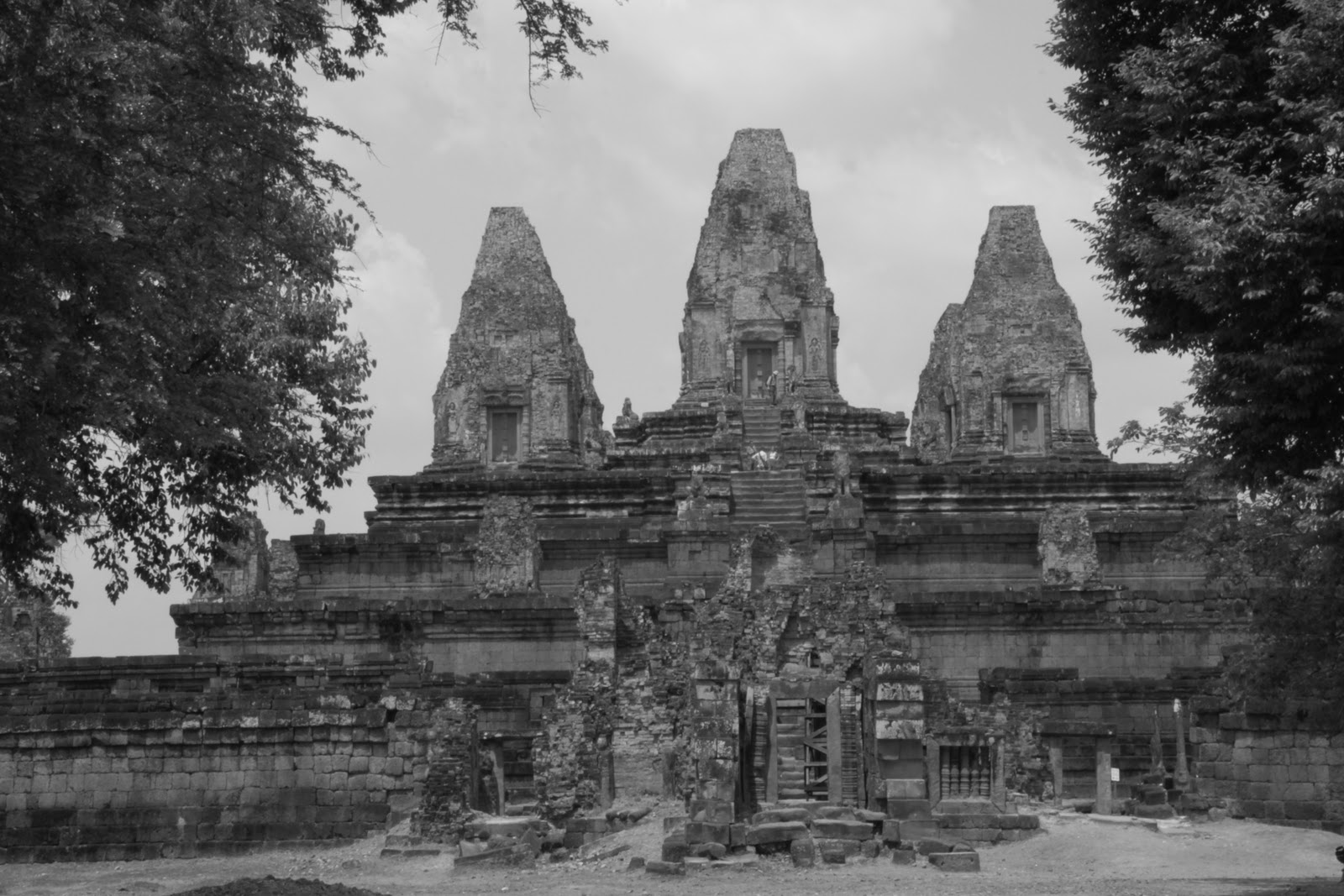 Originally, we though Angkor Wat comprised a single temple, but in fact historic Angkor comprises an entire Archaeological Park that served as the seat of the Khmer Empire, from approximately the 9th to 13th centuries. The temples in the park number over one thousand from the simplest rock pile to the largest religious Temple in the world, Angkor Wat. Although built only 800 years ago, most of the temples were forgotten by the modern world, aside from being sacked continuously, bombed in the "American War" and finally "re-discovered" by the French in the early 1900's. Upon "re-discovery" the French undertook the lofty goal of restoring them to their former glory. In a constant state of disrepair, the temples had literally been consumed by the thick forest canopy that surrounded them, so from 1907 to 1970 the French fought back the onslaught of natures unwelcome intrusions. Currently, a number of countries are aiding in the preservation of these historical landmarks including the French, Germans, Japanese, Koreans, and United States and therefore, are under construction, constantly.